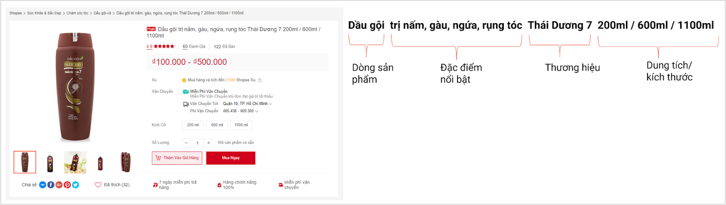 Tên sản phẩm chuẩn giúp Người mua dễ dàng tìm kiếm và hình dung sản phẩm. Công thức đặt tên phụ thuộc vào việc sản phẩm có thương hiệu hay không.